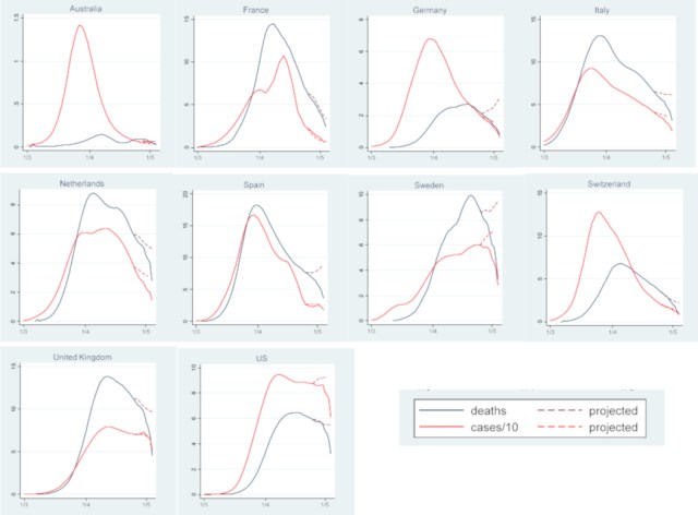Its clear that the projection method takes the latest data point and plummets and essentially the same rate as the earlier rise. On second thoughts, I think my short-run projections are doing better than these for many countries.