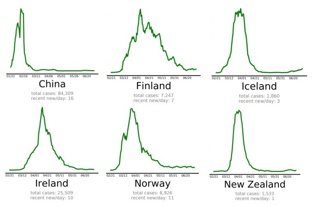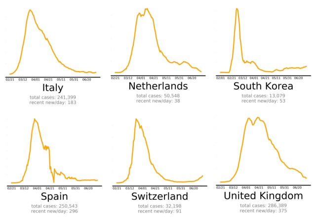 There is now sufficient data on social distancing, lockdown, and other measures that researchers are starting to assess the effectiveness of these measures. The July 4th edition of The Economist has an article summarizing what is becoming clear. Extensive testing and tracing of contacts was carried out by the Asian countries earliest affected, China and South Korea. China also locked down Wuhan and largely succeeded to confining the epidemic there. Italy was the earliest European country affected, and it locked down Lombardy on February 22, and succeeded in largely confining the epidemic to the north of the country. Some European countries, Australia and New Zealand locked down hard and very early while there were still very few deaths. These were the most successful. As were Switzerland, Germany and Austria which locked down while they still had fewer than 60 deaths. Other European countries that waited till they had hundreds of deaths before locking down, such as Britain, were much less successful and the virus spread throughout the country.