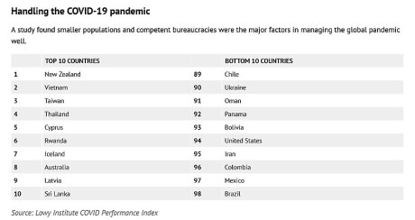 An Australian think-tank, the Lowy Institute has produced a Covid Performance Index and used it to examine the impact of geography, political systems, economic development and population size on the Covid-19 outcomes around the world.