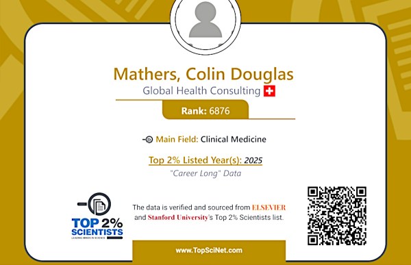 In August 2015, I was appointed as Honorary Professor in the College of Medicine & Veterinary Medicine, by the University of Edinburgh (http://www.ed.ac.uk/news/staff/2015/appointment-colin-mathers-060815)