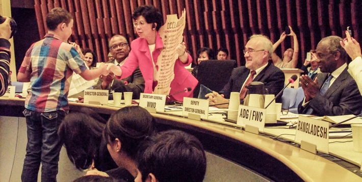 My older son presents a petition on health and climate change to Margaret Chan, Director General, WHO, on behalf of the children of WHO staff. WHO Conference on Health and Climate Change, Geneva 27-29 August.